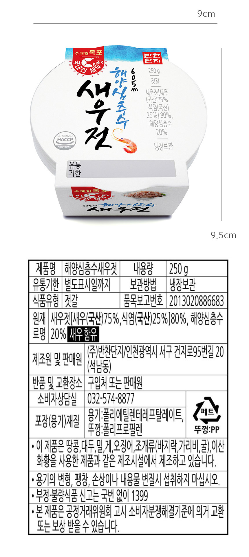[G] 반찬단지 국내산 심층수 새우젓 250g 젓갈