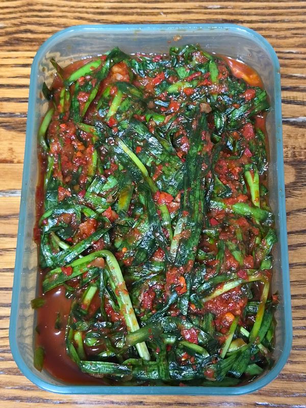 맛있습니다 간이 세지않아 더 좋아요 차츰 간이 부추에 스며들어 적절한 간이 되네요 매콤함도 딱 좋아요 크지않은 플라스틱으로 2개 정도 되는 양이예요 맛있게 잘 먹을 듯 해요 부추김치 자주 해먹었었는데 이제 게을러져서 사먹네요 맛있으니 되었죠~~