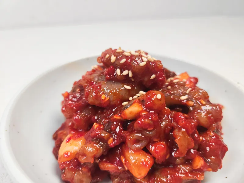 신선한 낙지를 알맞게 숙성시켜 탱글탱글하고 꼬들꼬들한 식감을 살렸어요. 씹을수록 쫄깃하게 퍼지는 낙지 본연의 맛이 일품이에요. 입맛을 확 당기는 매콤함, 젓갈 특유의 짭짤한 감칠맛이 밥 한 공기를 부릅니다.