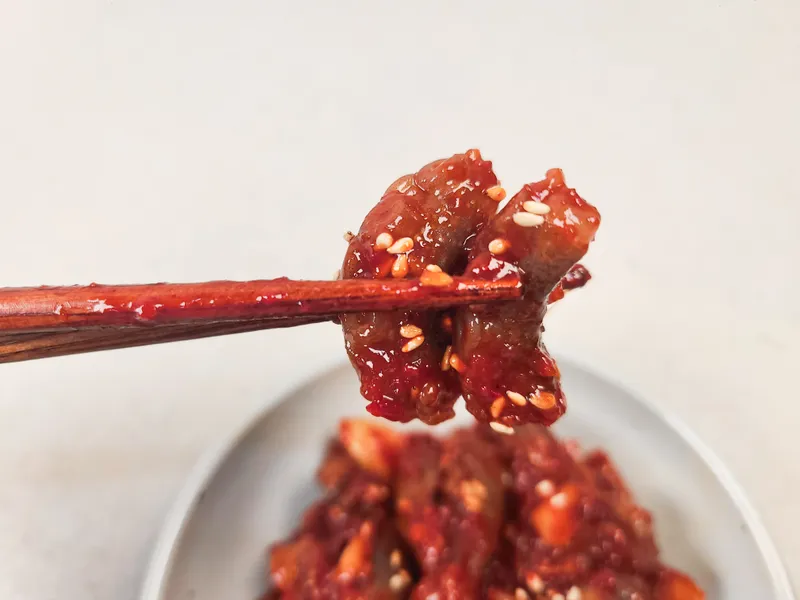 든든한 한 끼를 완성해 줄 정통 밥도둑! 비빔밥에 쓱쓱, 고기와 함께 곁들여도 찰떡궁합입니다. 냉장고에 하나쯤 꼭 있어야 할 필수 밑반찬이에요.