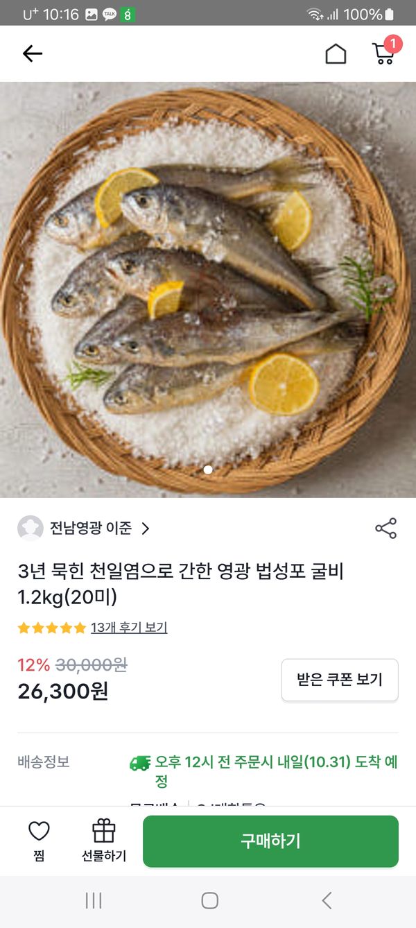 옵션: 영광 법성포 굴비 1.2kg(20미)