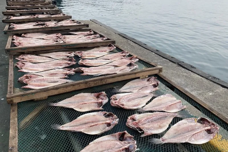 A. 민어를 100% 건조해 버리면 식감이 퍽퍽해 집니다. 가장 식감이 좋은 60-70% 정도의 수분을 유지할 수 있도록 건조시키고 있습니다.