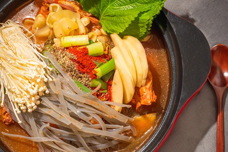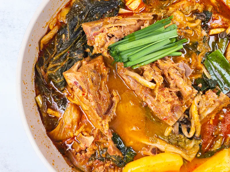 청정 제주산 돼지 뼈를 사용해 만든 제주 뼈 감자탕입니다. 16시간 동안 정성으로 진하게 끓여내 육수의 깊은 맛이 일품이에요. 칼칼하고 시원한 맛으로 한국인의 입맛을 제대로 저격한답니다.