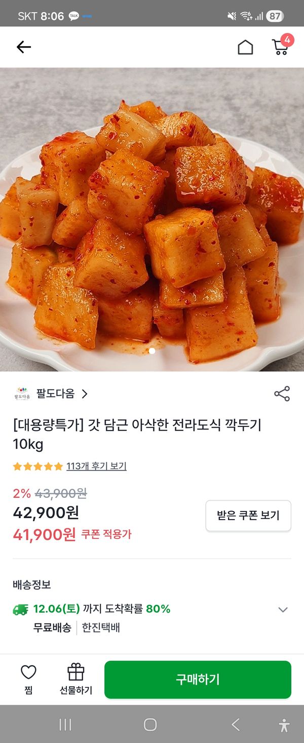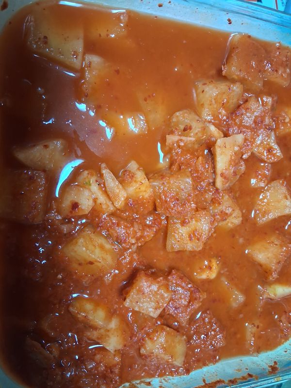 오래간만에 깍두기가 먹고싶어 주문을 했습니다.그릇에 담으면서 살짝 먹어보니 안 익었지만 맛있네요.잘 먹겠습니다.