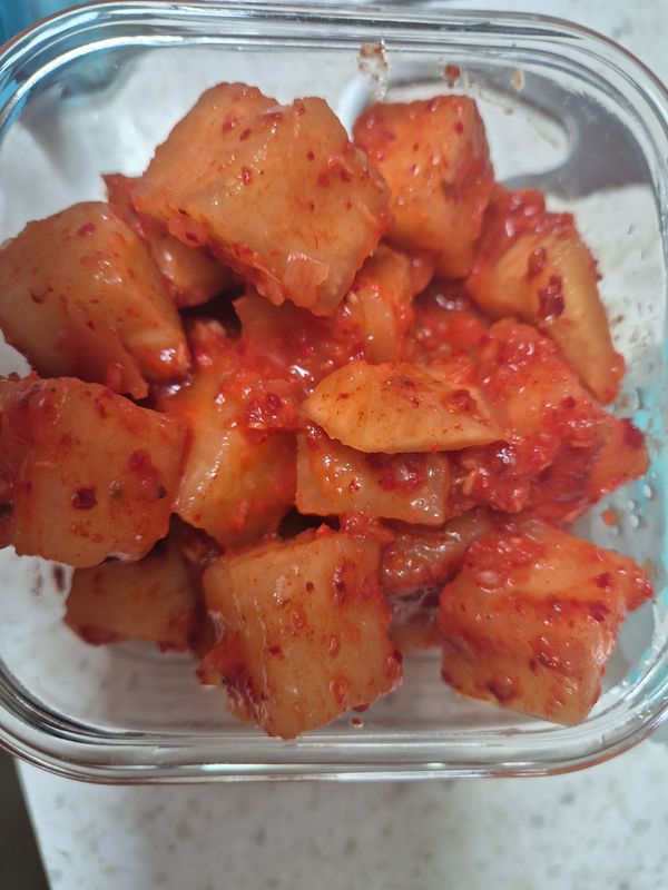 깍두기 맛나네요 익히면 정말 시원하고 아삭아삭 할거같아요 주말에 닭곰탕 끓여 맛나게 먹을께요 감사합니다
