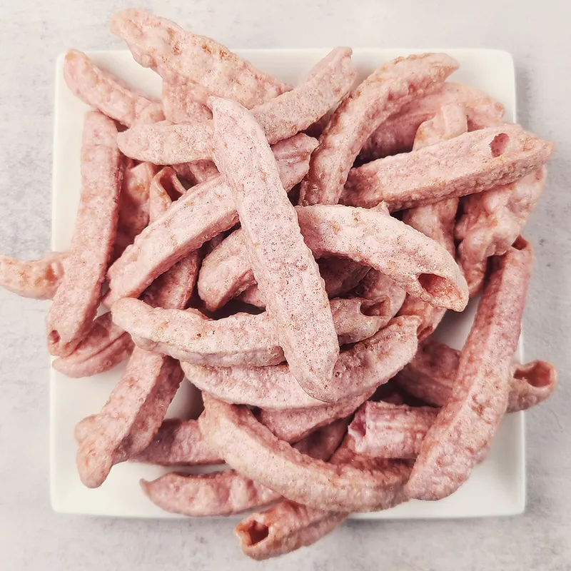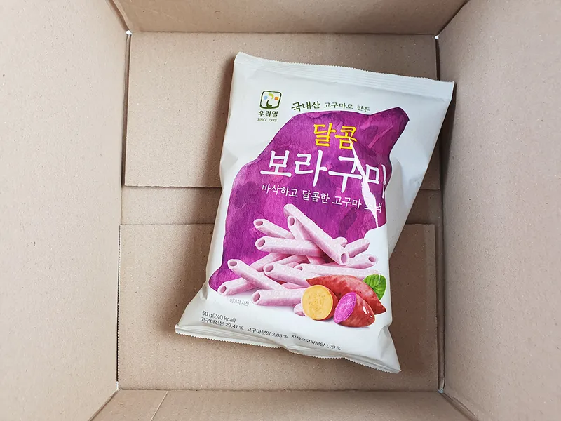 국내산 고구마를 사용하여 씹을 때마다 입안 가득 고구마의 풍미가 번져요. 은은하게 느껴지는 건강한 단맛! 가운데 구멍이 뚫려있는 스틱 형태의 과자로 바삭한 식감에 계속 손이 간답니다.