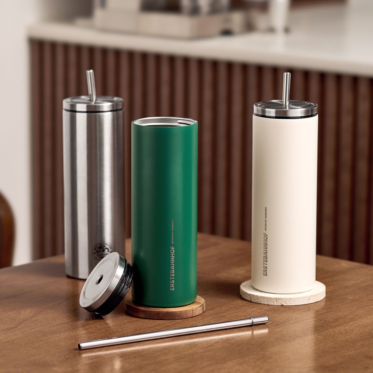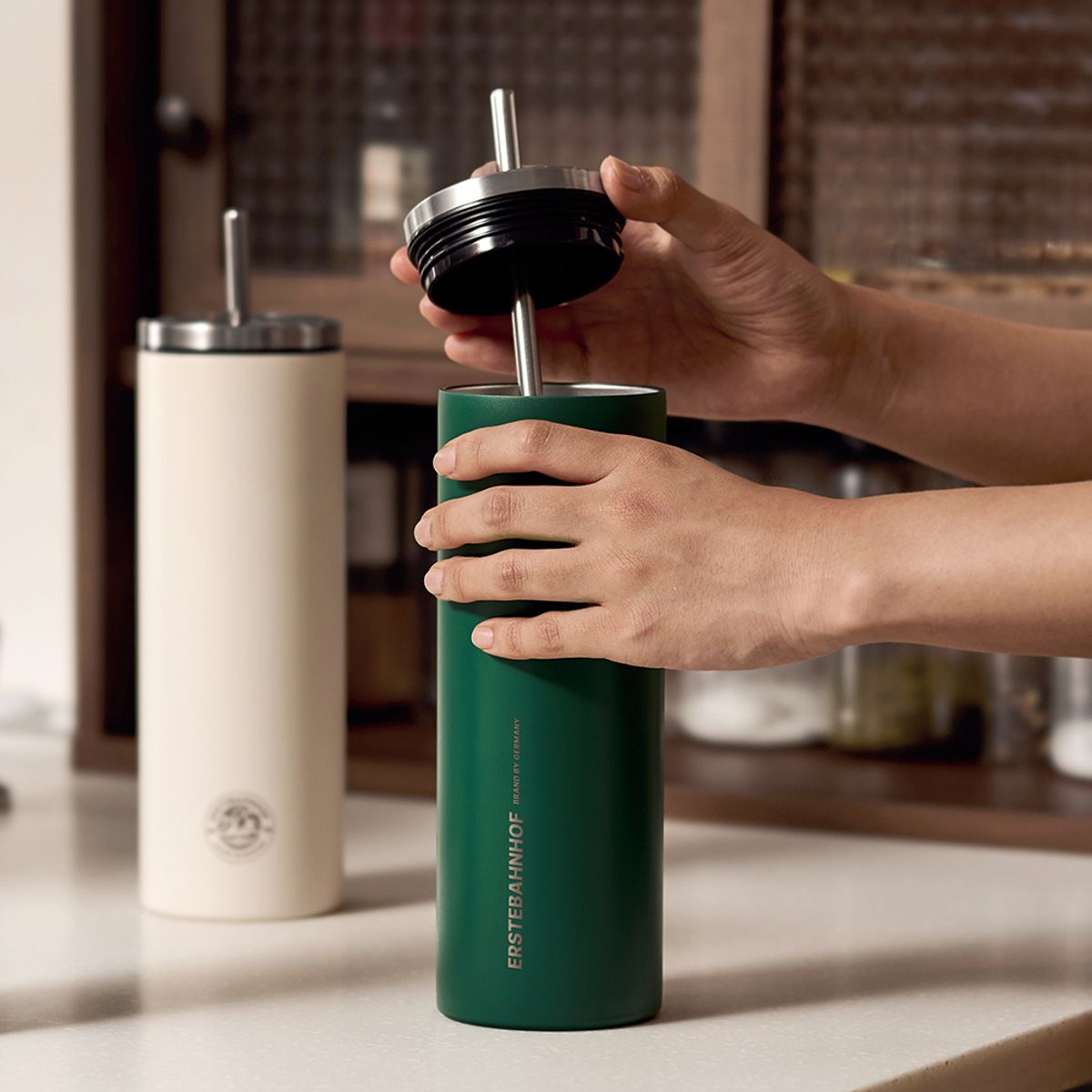 견고한 내구성 스텐 304 슬릭 텀블러 3색 (그린/크림/메탈) 600ml