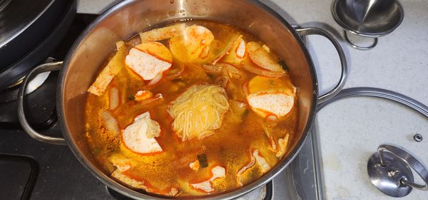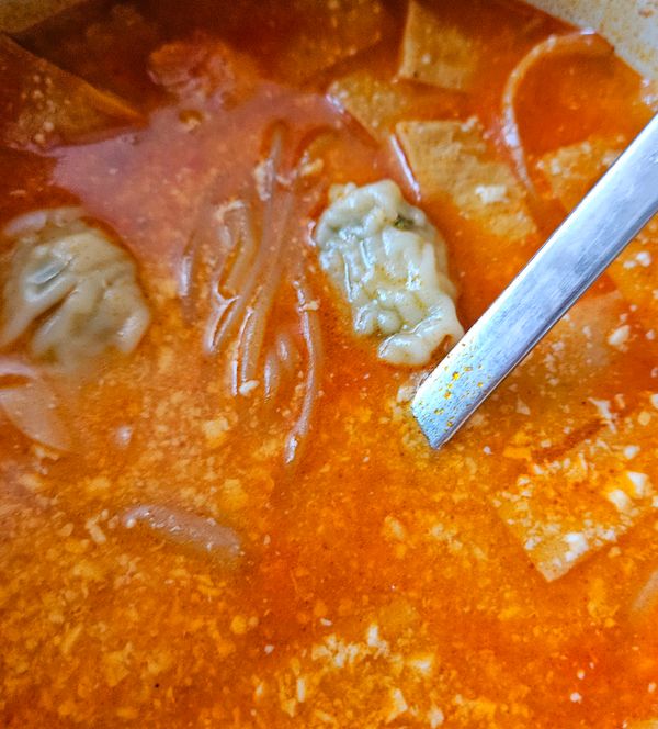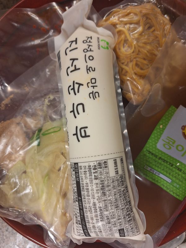 딱 끓이기만 하면 되게 모든게 다 들어있어요. 매콤한 뒷맛이 계속 땡기는 맛!