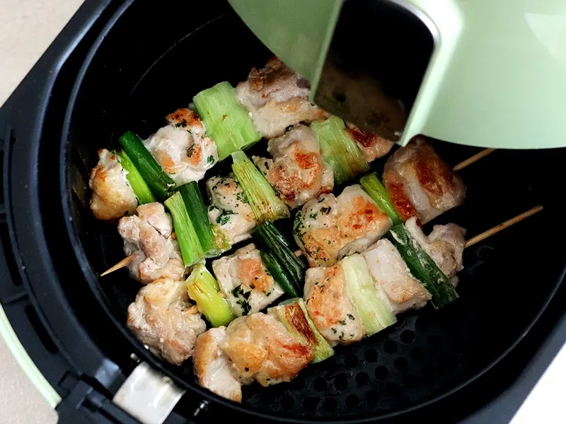 에어프라이어를 약 200도 예열한 후 꼬치에 밑간을 하여 20분 동안 뒤집어가며 구워 주세요.