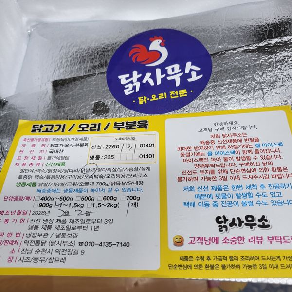 생닭 잘받았습니다 포장상태 좋아요 배송빠름 명절에 맛나게 먹을게요 새해복 많이 받으세요