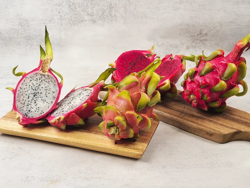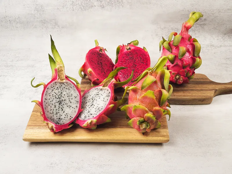 용의 여의주를 닮은 빨갛고 탐스러운 용과! 수분이 많고 자극적이지 않은 은은한 단맛이 매력적이에요. 부드러운 과육에 박혀있는 씨앗들의 톡톡 터지는 식감도 재밌답니다. 쭈글한 모습이 보일 때 드셔야 가장 달콤한 용과의 맛을 맛보실 수 있어요.