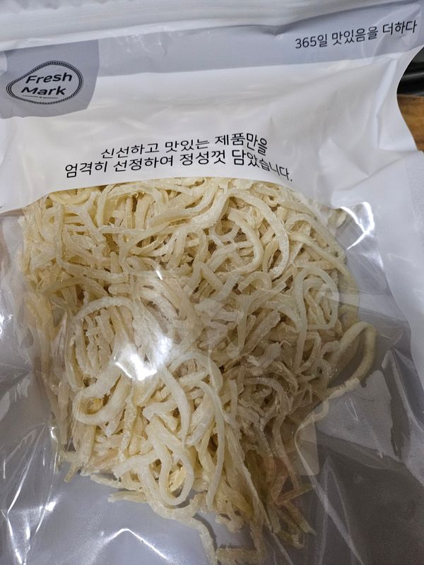 오자마자 양념해서 먹어봤는데 식감이 별로 였습니다 다른상품은 최고라고 할수있는데 진미채만큼은 약간 떨어지는 느낌입니다 아쉽습니다 진미채는 다르곳에서 구입해야할듯합니다