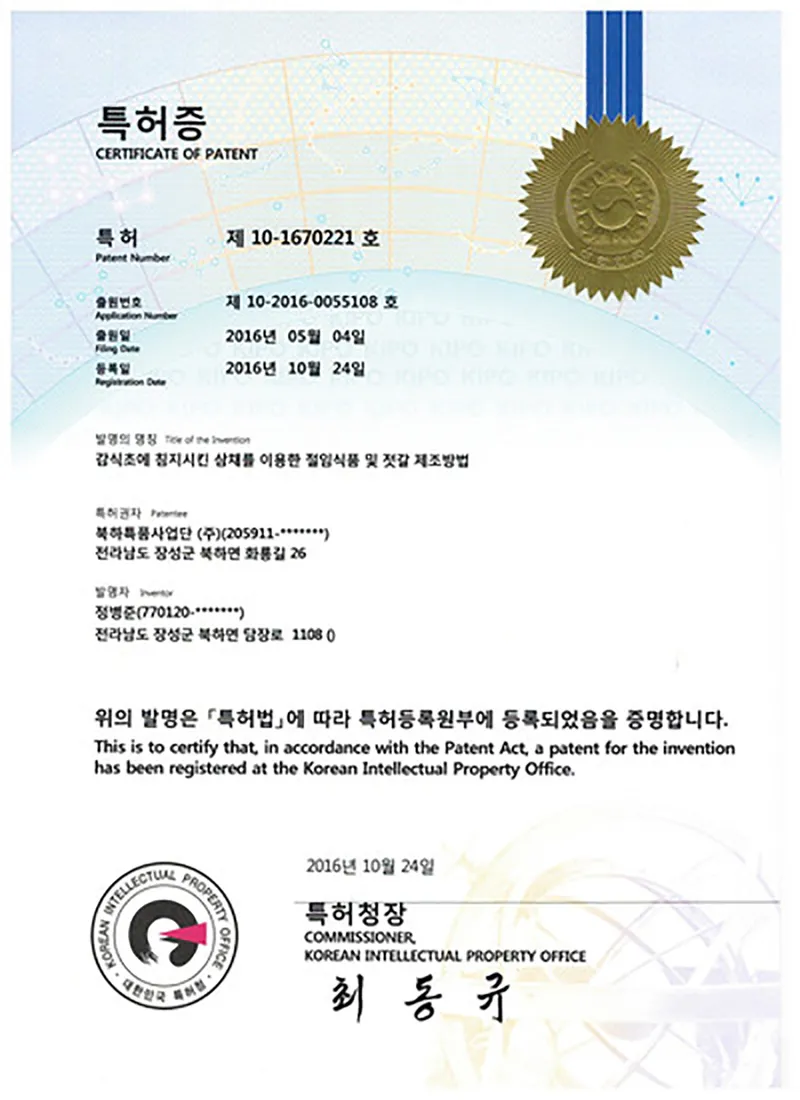 한 제품을 판매하기까지 최소 2년의 시간이 소요됩니다. 세척과 혼합, 숙성의 각 과정에 맛의 기본을 지켜 정성스럽게 제조합니다.