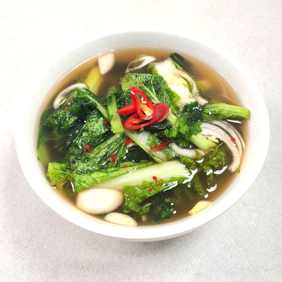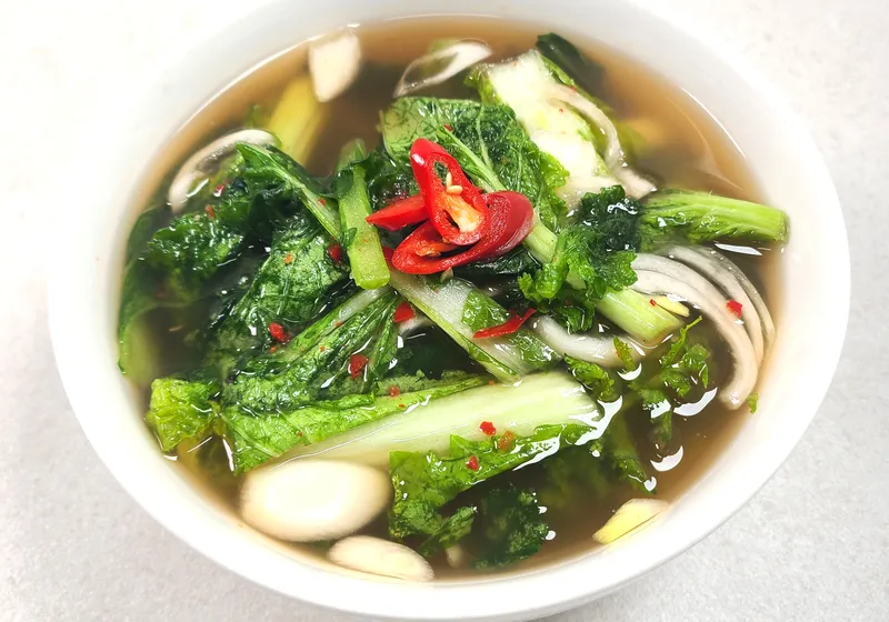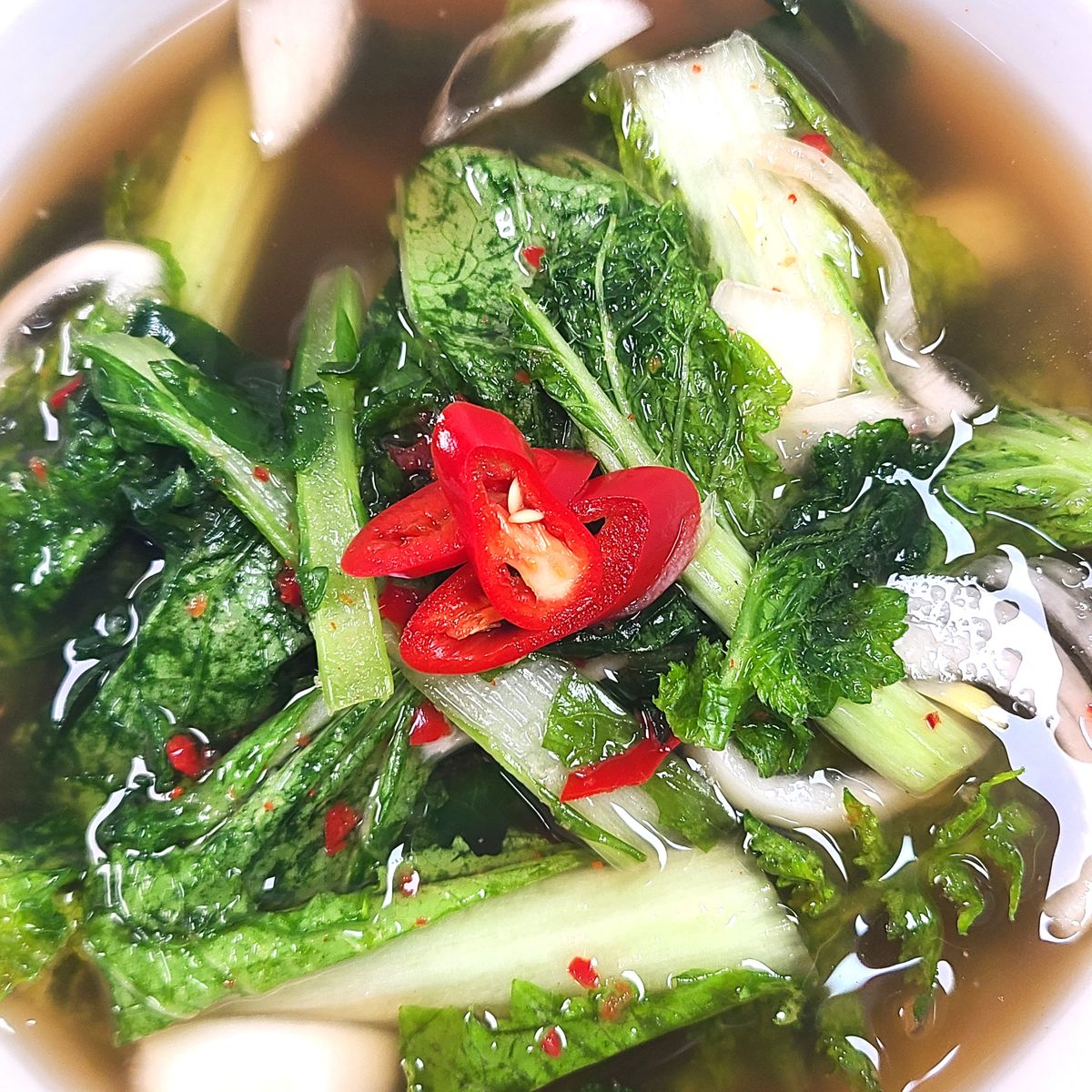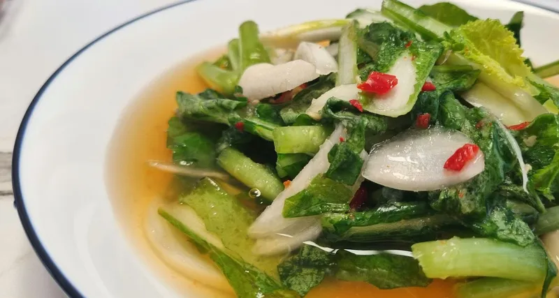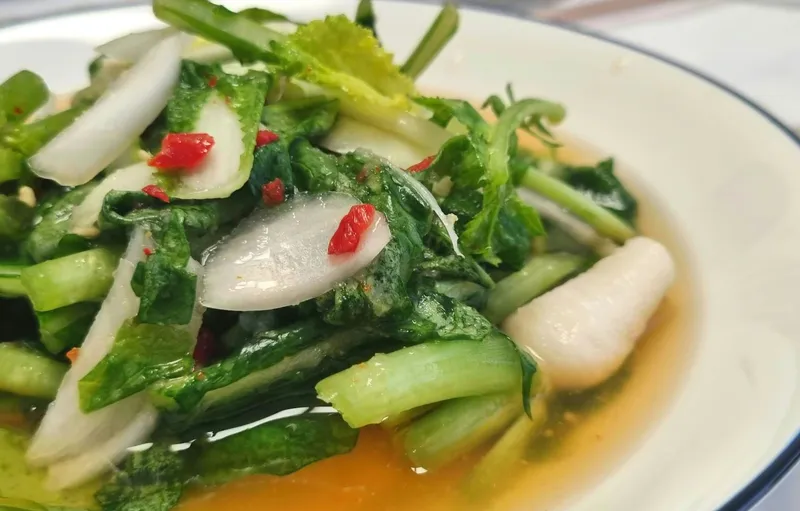 열무와 얼갈이 단배추로 만든 이 김치는 칼칼한 맛과 함께 깔끔한 시원함이 특징이에요. 무우와 양파, 배 등 각종 재료를 아끼지 않고 더해 국물 속에 담긴 맛이 입안에 퍼져요. 여름철 밥상에 올리기 좋은 상큼하고 개운한 맛입니다.