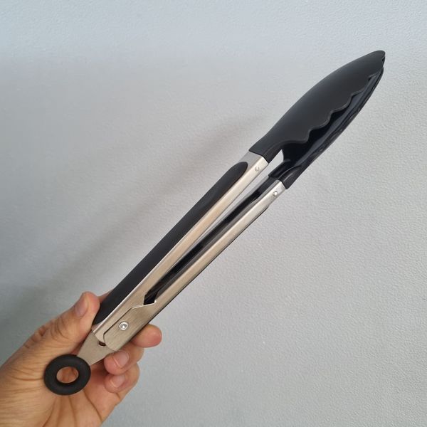 집게 까만부분 적당히 딱딱해서 음식 잘 잡혀요. 고리부분 작동으로 접었다 폈다도 잘되요.