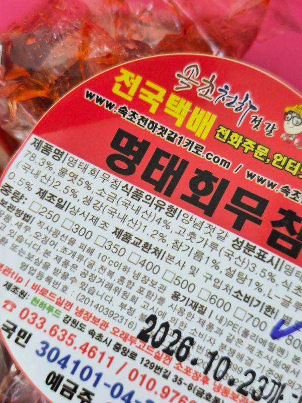 명태회무침 24년도에 많이 주문 해서 먹었는데. 갑자기 생각이 나서 주문 했는데. 여전히 맛있네요. 부드럽고 잔가시도 없어서 먹기좋아요.