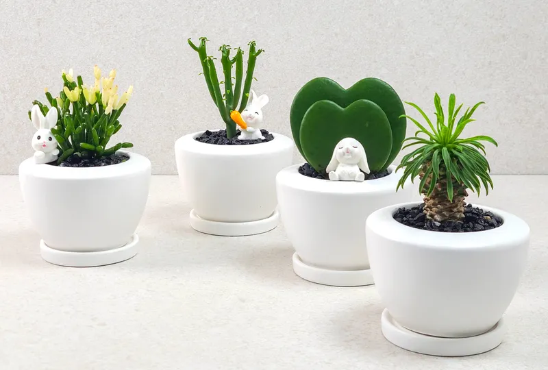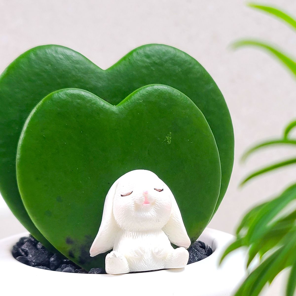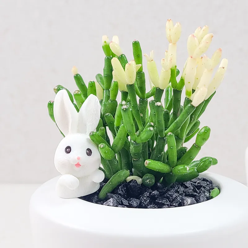 깡총한 토끼 피규어가 화분에 포근함과 사랑스러움을 더해줘요.