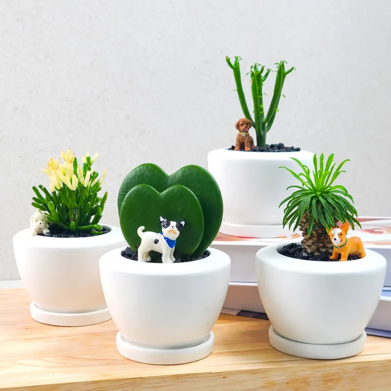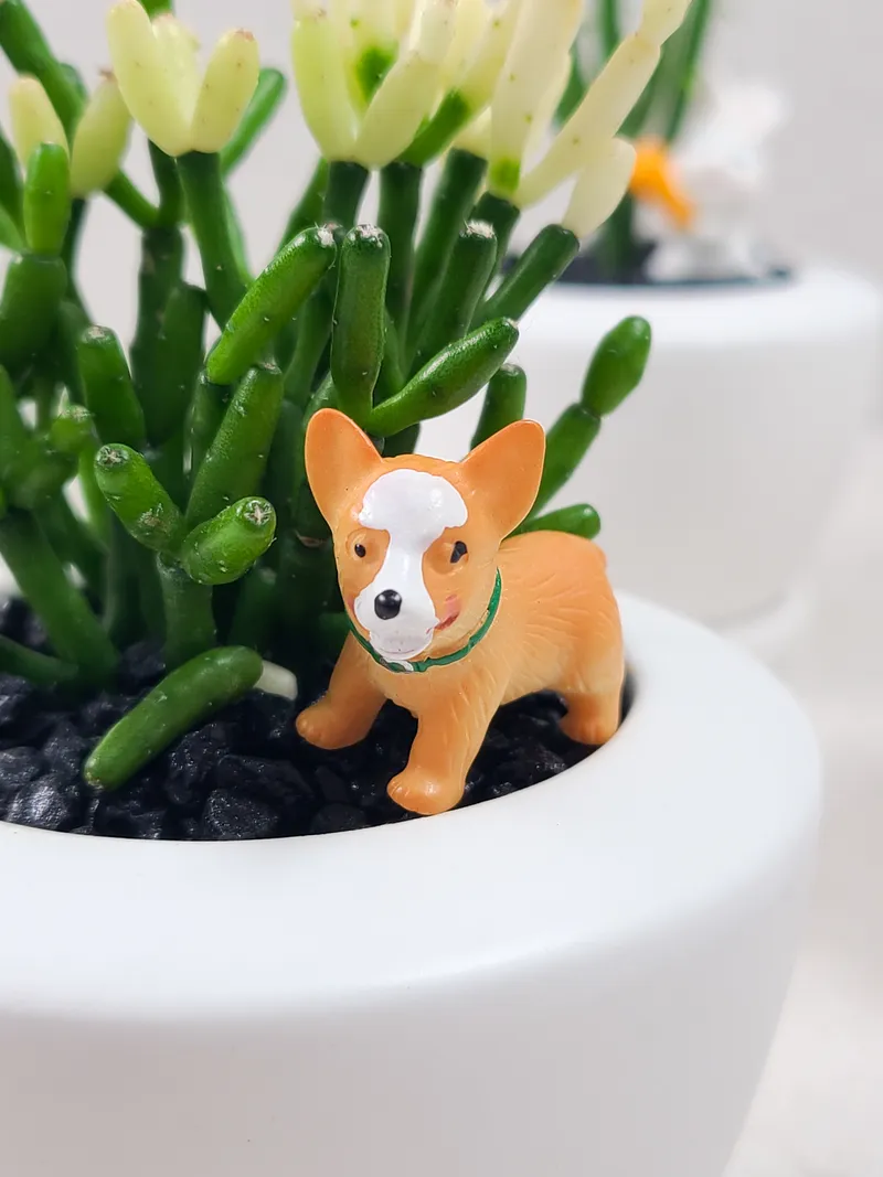 귀여운 강아지 피규어가 다육식물 옆을 지켜주듯 아기자기한 포인트가 되는 피규어예요.