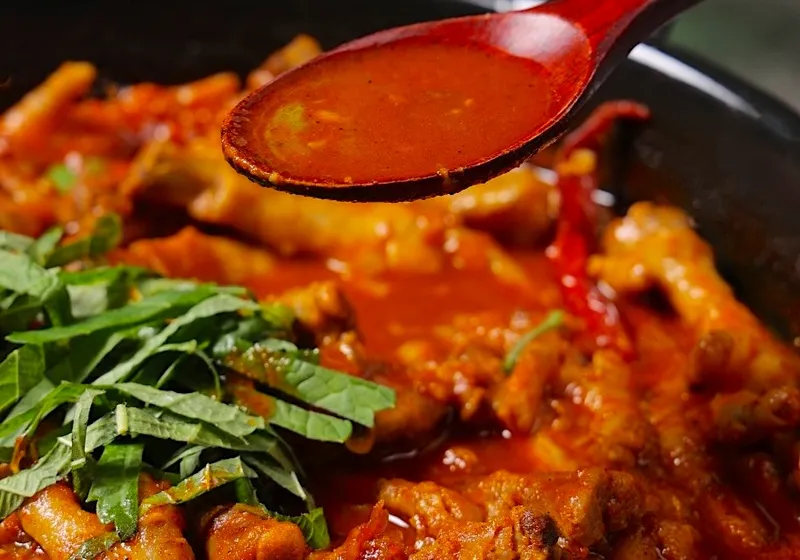 입안 가득 퍼지는 강한 매운맛과 깊고 진한 국물이 중독적인 국물 닭발입니다.