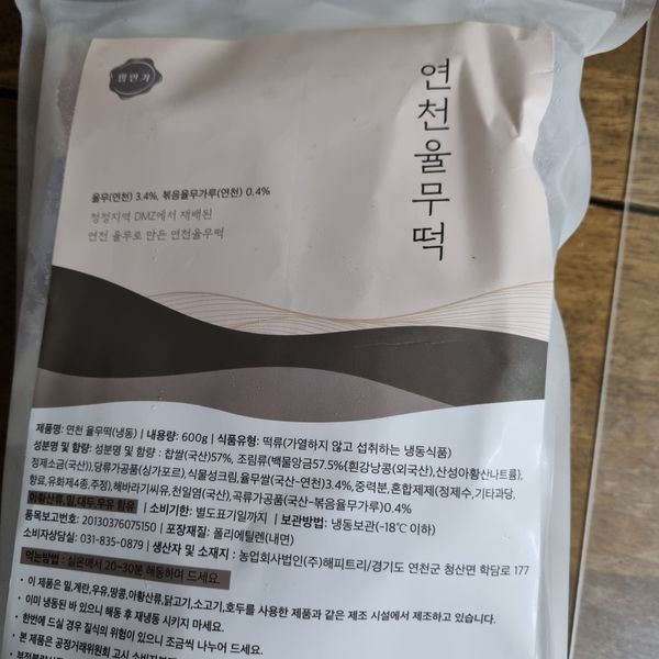 낱개로 포장된 12개의 떡이 들어 있고 율무 함유량은 볶은 율무가루 포함 3.8% 표시되어 있네요~