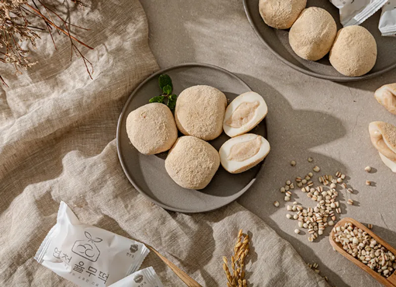 국내산 찹쌀에 천일염으로 간을 하여 쫄깃한 떡피에 청정지역 DMZ의 산간 고랭지에서 생산되는 연천율무를 더했어요. 여기에 부드럽고도 담백한 백앙금과 연천율무로 속을 꽉 채워 고소함이 일품이랍니다. 정성을 담아 준비했으니, 율무떡의 풍성한 풍미를 만나보세요.