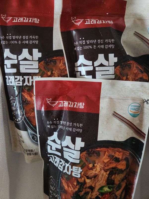 아들과 남편이 쟁여놓으래요. 고기도 많고 매콤하고...먹다가 사진 찍었는데 진짜 맛있음요,재구매하려고요. 진짜 순살감자탕인데 감자는 없는게 남편이 다 드심 제가 늦게 먹었거든요.