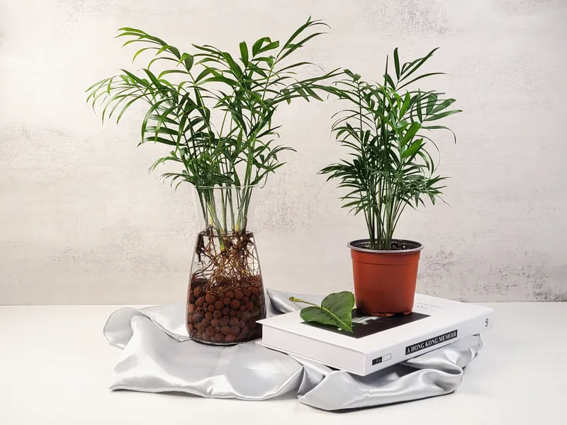 식물을 수경재배로 키우면 또 다른 멋스러움을 느낄 수 있는데요. 테이블야자와 홍콩야자도 수경으로 키울 수 있는 식물 중 하나예요. 물속에서 뿌리가 자라며 더욱 멋들어진 연출이 가능하죠.