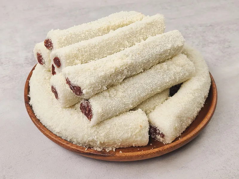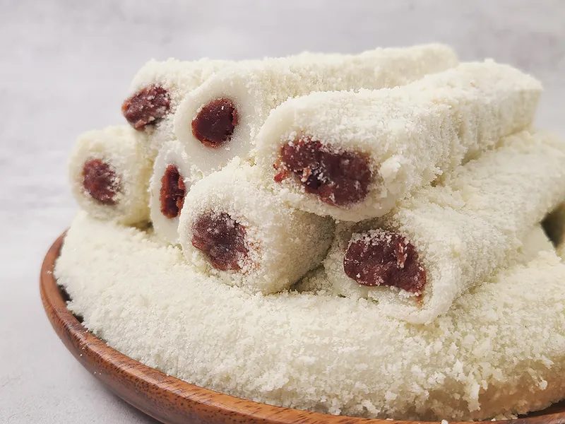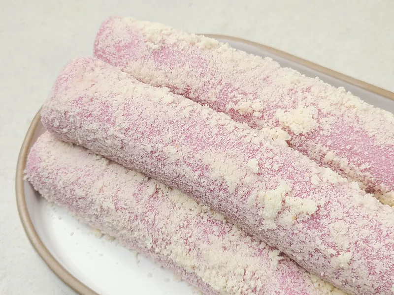 달콤한 고구마앙금을 품은 어여쁜 색감의 고구마말이떡이에요. 국내산 찹쌀로 만들고, 카스테라 가루까지 묻혀 떡 맛을 한층 끌어올렸답니다.