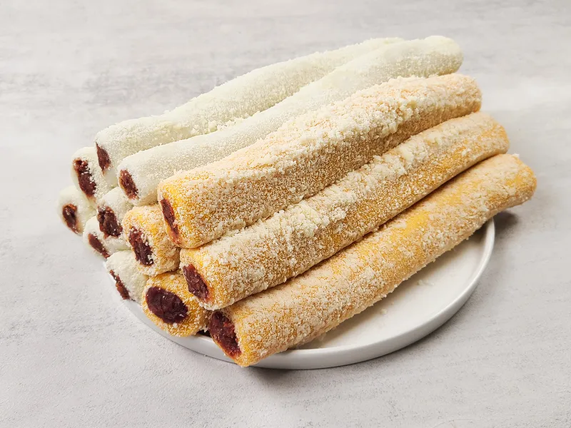 찰기 가득한 쫀득함의 비결은 바로 국산 찹쌀입니다. 더욱 담백하고 쫄깃쫄깃해 씹는 식감이 재밌어요. 백말이떡, 호박말이떡, 쑥말이떡 세 가지로 준비했으니 취향껏 골라보세요😊