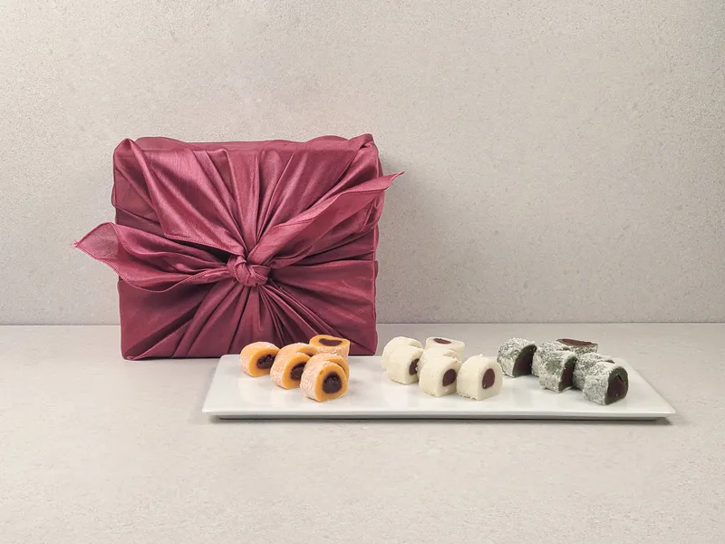 팔도감 베스트 인기 떡 선물세트! 백말이 1kg + 호박말이 1kg + 쑥말이 1kg + 고급 보자기 포장으로 구성했습니다.