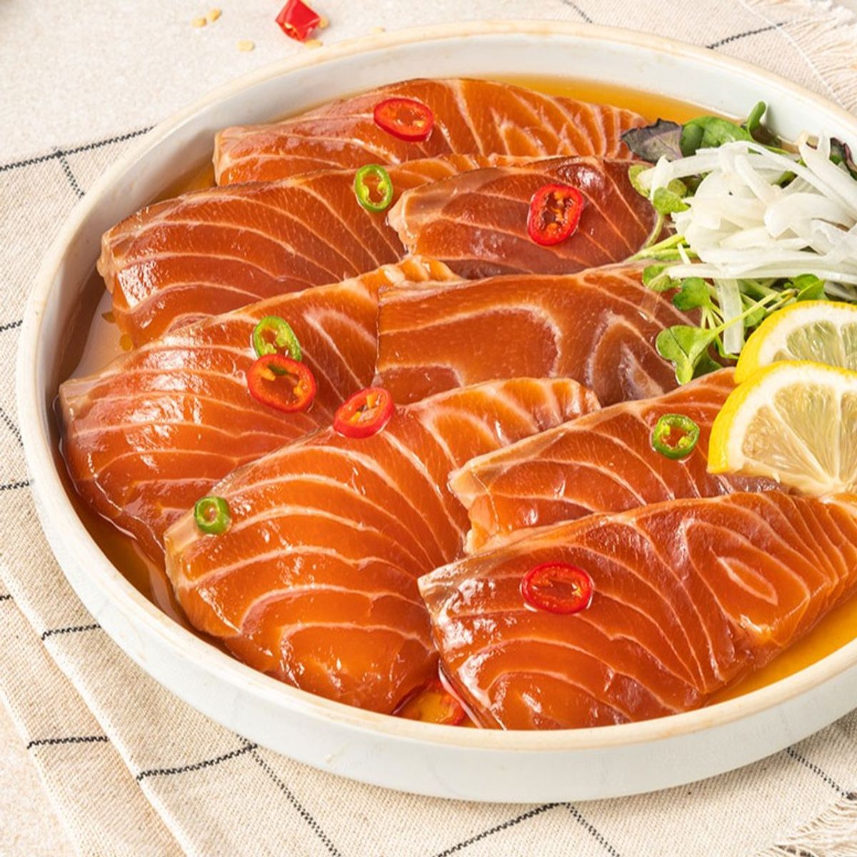 탱글탱글한 연어와 특제소스를 사용하여 풍미 좋은 간장 연어장입니다. 사용된 연어는 노르웨이 슈페리어 등급으로, 탱글하고 쫀득한 육질이 특징이에요. 그냥 간장 연어장이 아니라, 향부터 다른 한 끼 반찬이에요.
