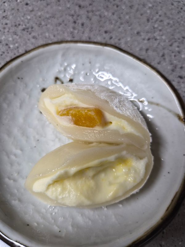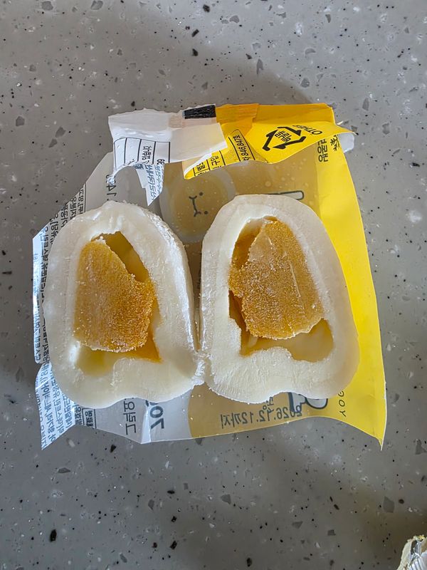 요거트 망고라 상큼 달콤 맛있어요!! 떡도 쫀득하고요 살짝 해동이 떡은 쫀득하고 전체적으로 더 좋아요 다만 완전해동 안되다보니 요거트,망고는 살짝 서걱거려요