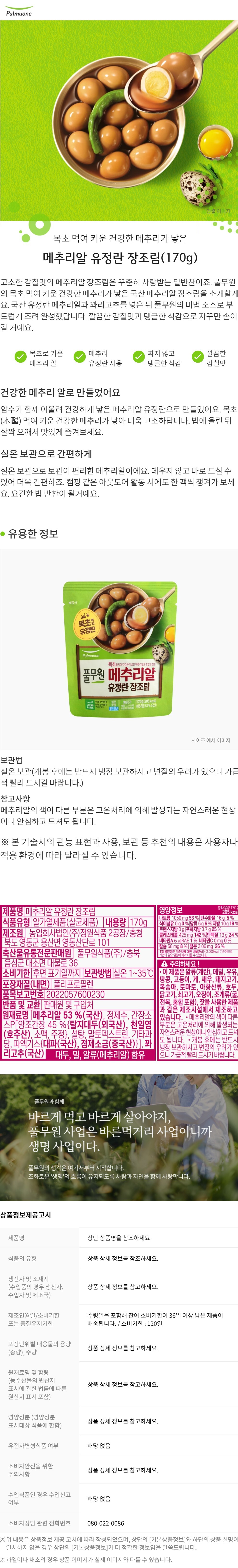 [풀무원] 메추리알 유정란 장조림 (170gX8봉)