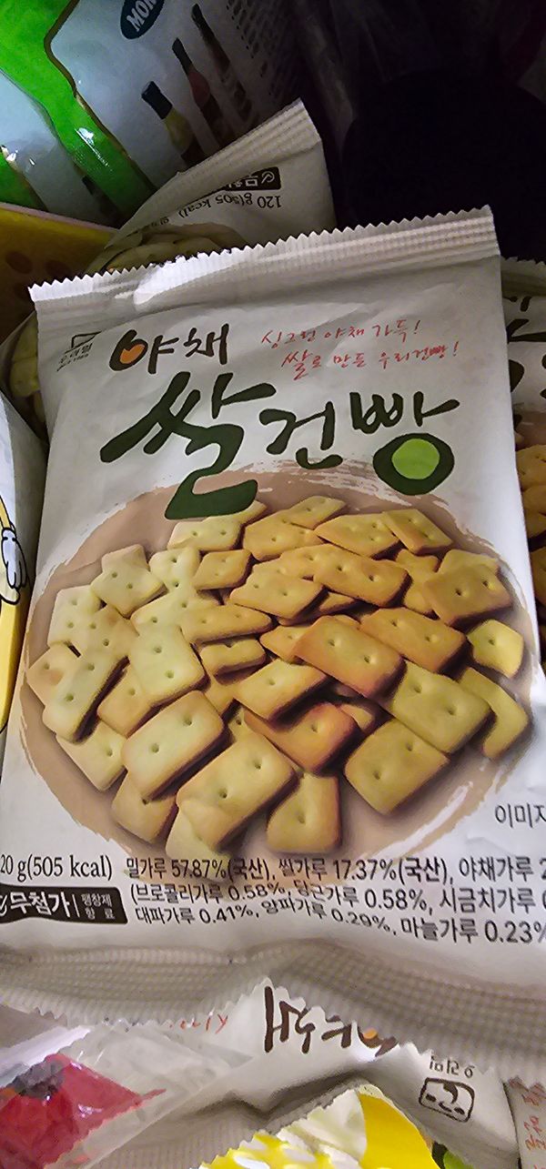 야채쌀건빵 입이 심심할 때 간식으로 먹기에 딱 좋네요. 담백하고 고소하니 제 입맛에 맞고 야채도 들어가서 건강한 간식인 거 같아요.