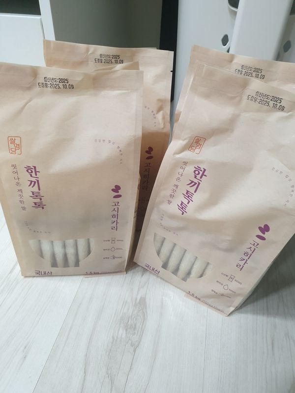 고시히카리 씻어나온쌀!! 쌀이 똑 떨어져서 어떤쌀을 살까 보다가 고시히카리 씻어나온 쌀이 맘에 들어서 처음 구매 했어요 도정일도 10월9일이구 내일 빨리 밥 해먹어볼래여 밥이 엄청 맛있을고 같아요 ㅎㅎ