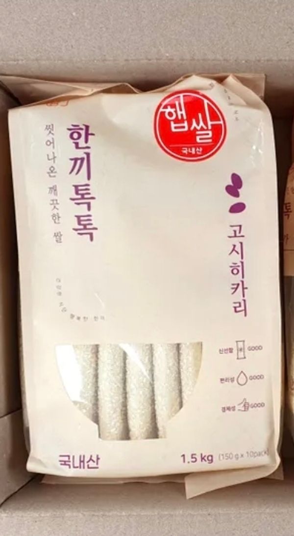 25년 햅쌀 씻어 나온 한 끼 톡톡 고시히카리 1.5kg (150g*10개입)