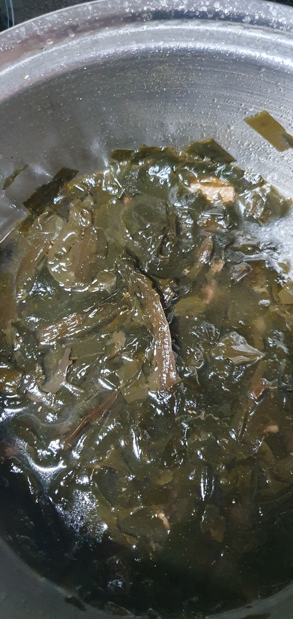 진도미역이라 더 쫄깃하고 깨끗합니다 양지고기 넣고 끓이다가 불린 미역 넣기만 했는데 구수하고 맛이 좋아요