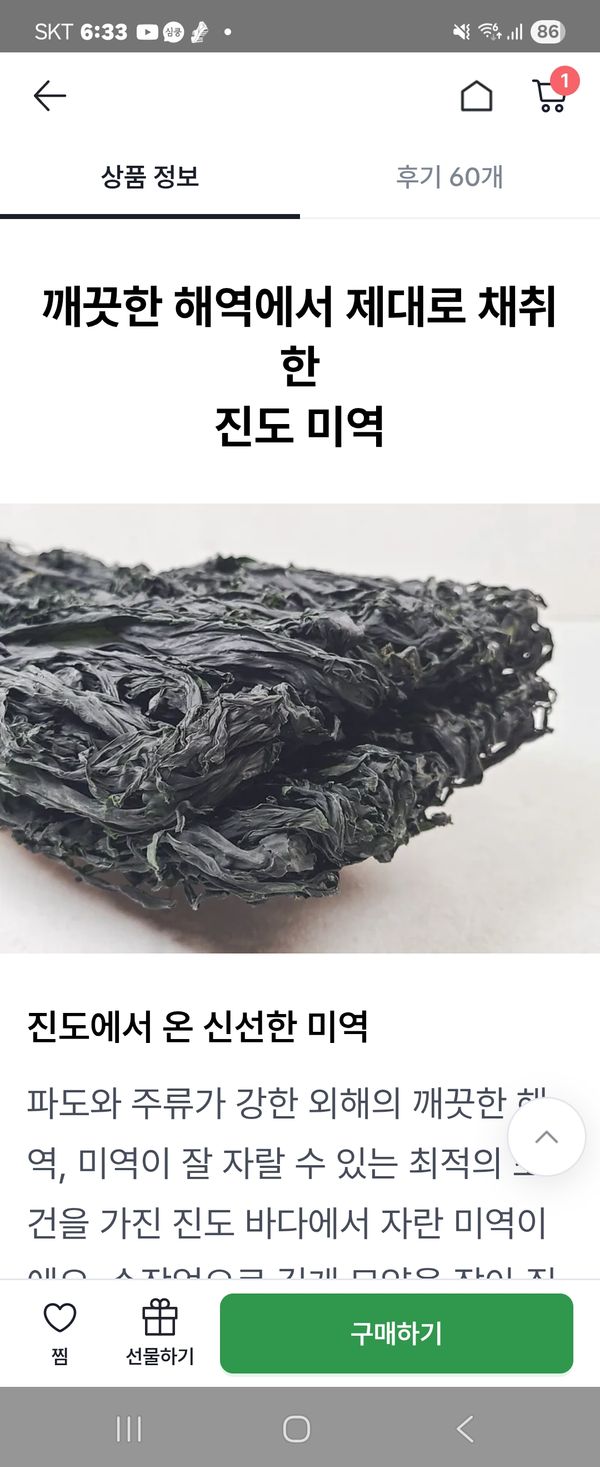 60년동안 살면서 먹어본 미역중에 제일 맛있는 미역입니다 상태도 너무 깨끗하더니 맛도 너무 좋습니다 건승하세요~~