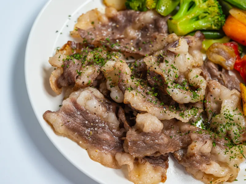 씹을수록 고소한 맛이 일품인 한우 생 차돌박이입니다. 꼬들꼬들한 얇은 식감으로 지방의 쫀득함과 부드러움을 동시에 느낄 수 있어 인기 만점이죠. 굽는 순간 순식간에 다 먹어 버리게 되는 맛이에요.