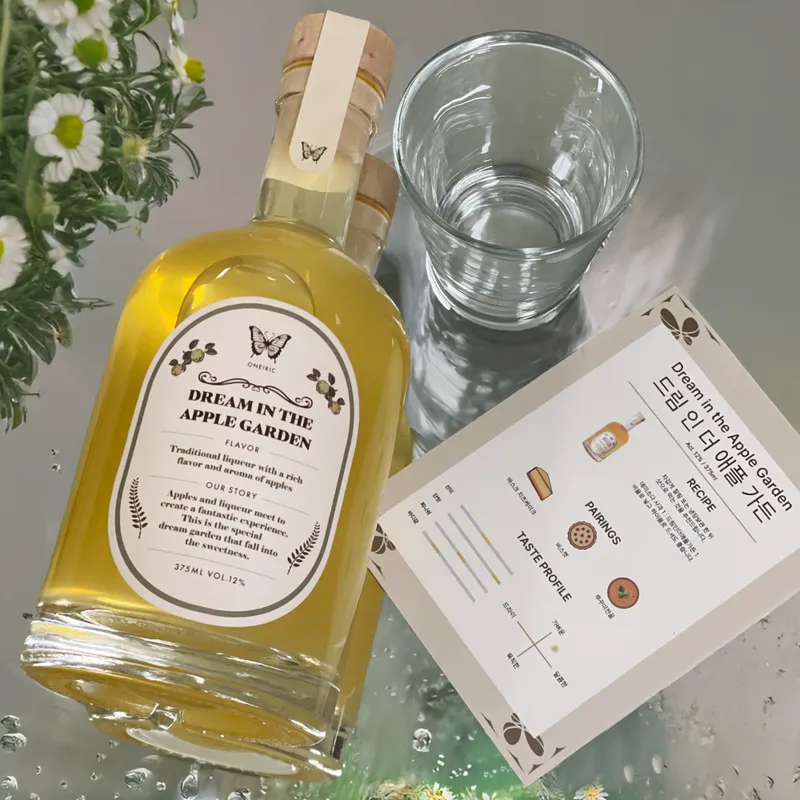 애플 가든(375ml) : 차갑게 칠링 또는 냉장 보관한 뒤 샷으로 먹는 것을 추천해요. 페어링은 바스크 치즈케이크, 비스킷, 주꾸미 전골과 같은 음식과 잘 어울려요.