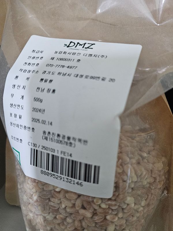 통밀처음구입해ㅓ 다른잡곡과 섞어서 잘먹고있어요 맛은 잘모르고 곡물상태는 좋았어요 감사해요