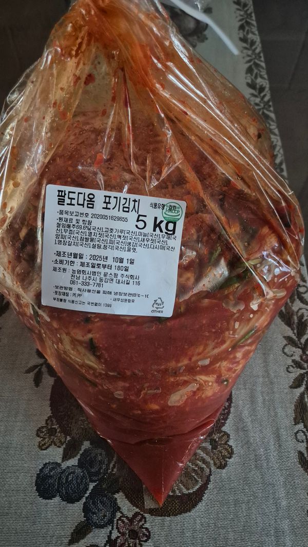 안녕하세요. 주문후 며칠안되어 수령했읍니다.김치담근후 빠른시간내에 발송되신것 같습니다. 싱싱하기에 약간의 숙성 시간은 필요한듯합니다. 계속 좋은김치를 위해 수고하세요