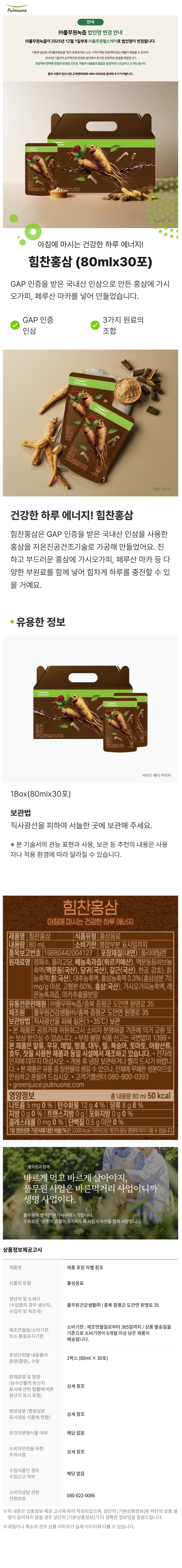 [풀무원] 힘찬 홍삼 건강즙 홍삼즙 80mlX30포