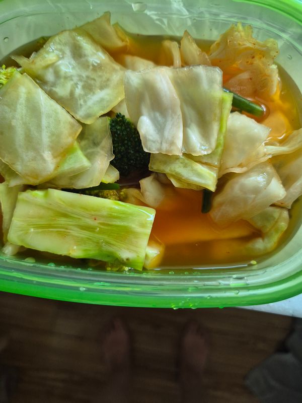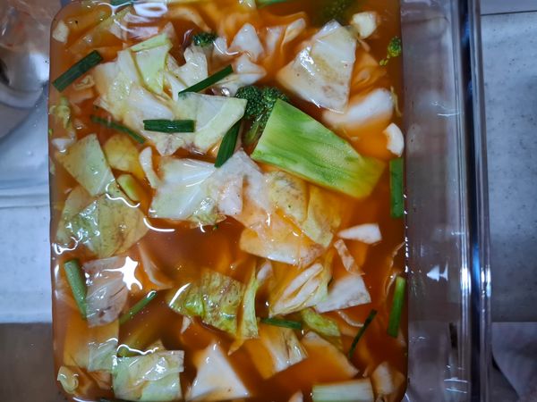 시원하고 매콤하여 느끼한 고기류를 먹을 때 특히 좋습니다. 얇게 썬 무우를 조금 넣었으면 좋지 않았을까 생각해 봅니다만 덕분에 싫어하는 부로콜리를 맛있게 느끼게 해 주어서 좋았습니다