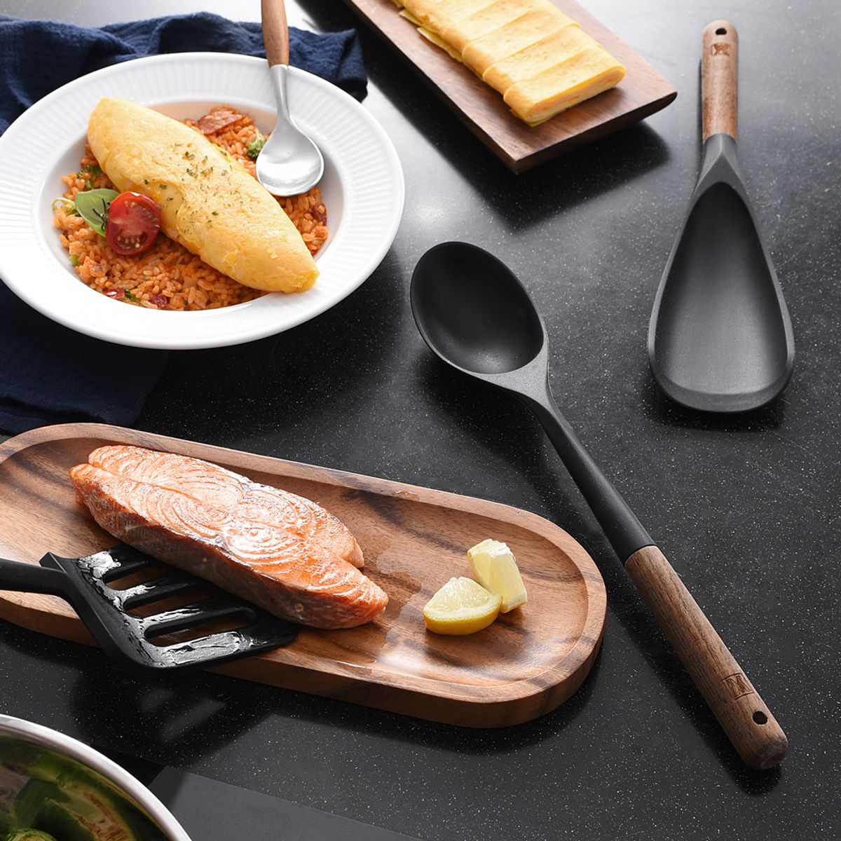 크기가 적당하고 음식 닿는 부분의 재질이 싴리콘이라서 믿고 쓸 수 있겠어요. 손잡이가 나무인 점이 조금 아쉬운데 같은 실리콘이면 단가가 올라갈 것 같고... 나무 손잡이가 디자인으로도 괜찮은 것 같아요.