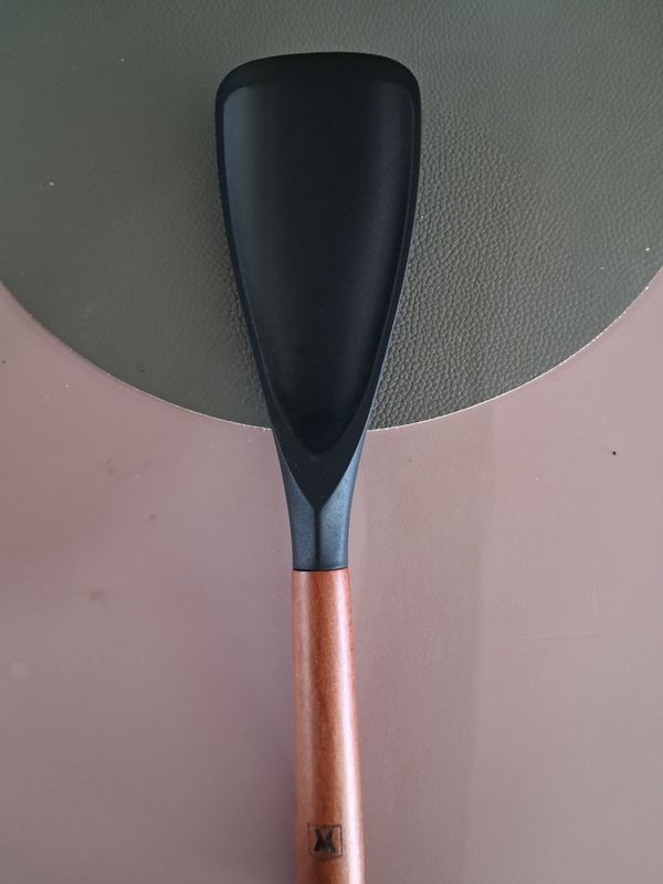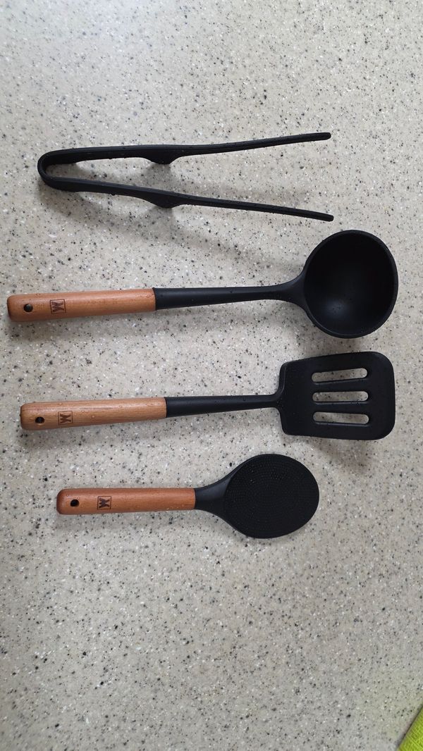 크기가 적당하고 음식 닿는 부분의 재질이 싴리콘이라서 믿고 쓸 수 있겠어요. 손잡이가 나무인 점이 조금 아쉬운데 같은 실리콘이면 단가가 올라갈 것 같고... 나무 손잡이가 디자인으로도 괜찮은 것 같아요.
