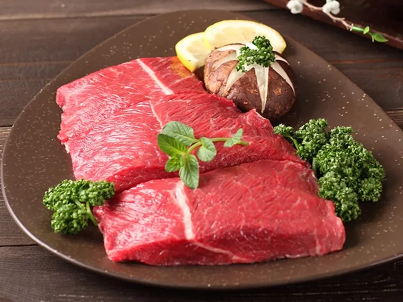 덩어리가 크고 마블링이 적은 살코기 부위로, 고기의 결이 거칠지 않고 고기 덩어리가 큼직합니다.