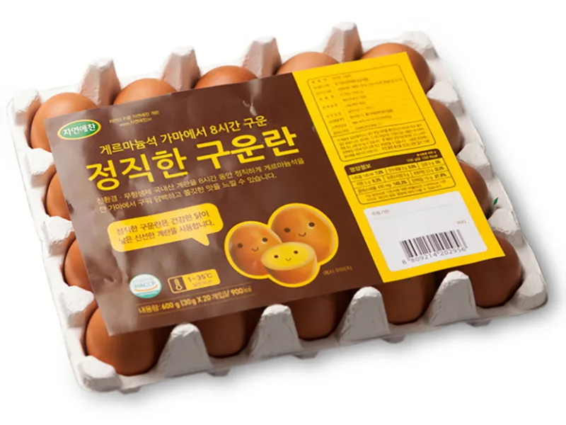 온라인에서 판매되는 저가의 구운란과는 다릅니다. 세심한 선별과 정밀한 공정에 따라 구워지지 않은 소형 농가의 구운란과 달리 엄밀한 선별과 엄격한 제조 공정을 거쳐 구워냅니다. 중량미달 등의 불량 계란은 엄밀히 선별하여 좋은 계란으로만 선별하여 무르지도 질기지도 않게 균일하게 구워낸 정품 구운란 이랍니다.