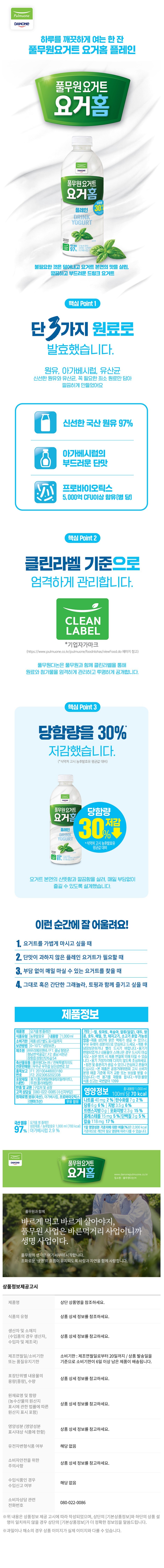 [풀무원다논] 요거홈 플레인 1000mlX3개