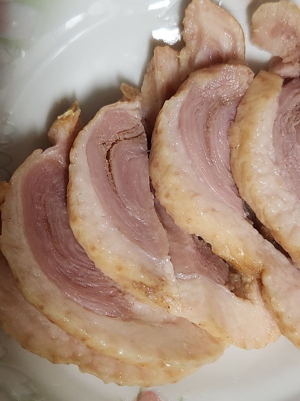 큼직한 오리 반마리를 슬라이스 없이 통으로 담았어요.
